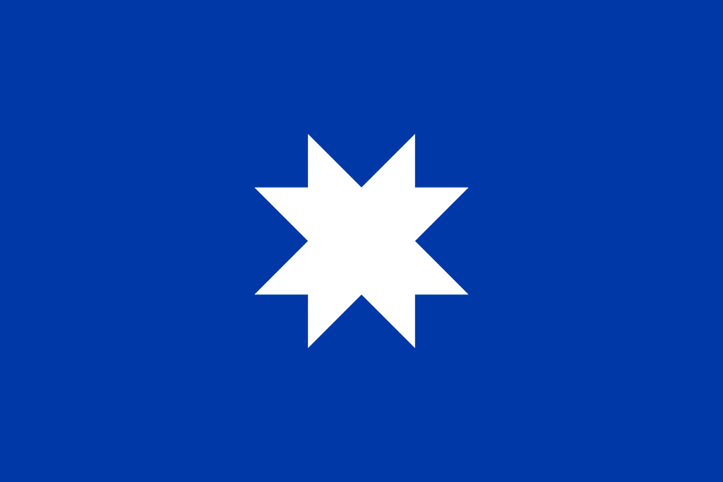 The first flag flown in Chile was the war flag of the Mapuche. The flag is a plain blue field with a white eight-pointed star, called guñelve in the centre. At this time the burgundy cross flag was flown by the invading Spanish army in Chile.