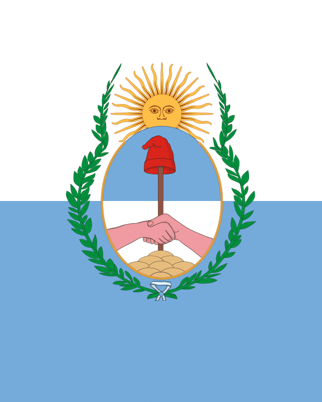 In 1814 the Army of the Andes were holding military campaigns in Chile. The flag flown was a white and blue bicolour with the coat of arms of Argentina in the centre.