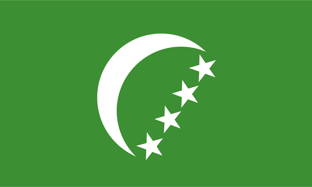 The first official flag was the flag of the State of the Comoros that was introduced in 1963. It was a simple green field with an Islamic crescent top left with four diagonal five-pointed stars.