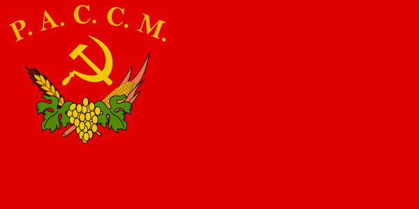 In 1924 the Soviets turned it into the Moldavian Autonomous Soviet Socialist Republic and by 1925 they had a new flag which was plain red with the hammer and sickle on the top left hand side, onto which was the letter P.A.C.C.M and underneath maize and wheat ears wrapped in vine leaves.