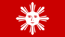In 1899 a red triangle with faced sun and three five-pointed stars was adopted as the First Philippines Republic.
