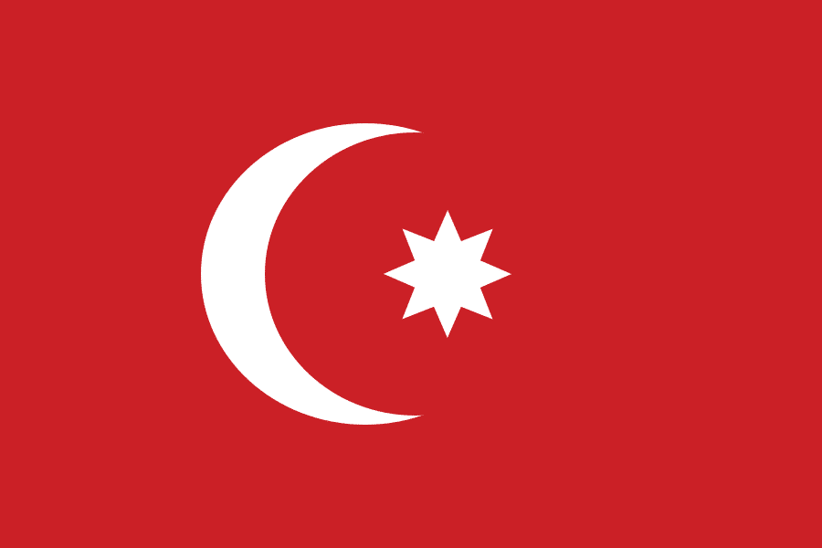 The first flag of Turkey came during the rule of the Ottoman dynasty. Even though they had taken control in 1299, there wasn’t an official flag until 1844 during the Tanzimat reformation of the Ottoman Empire. The red field and crescent with eight-pointed star was taken from the 1793 Ottoman Naval Flag. However, the Empire flag was chosen to have a five-pointed star rather than eight.