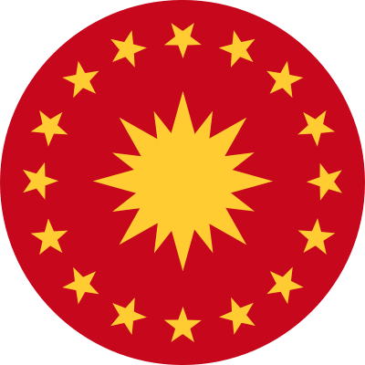 The Presidential Flag of Turkey is the red flag of turkey with the Presidential Seal of turkey in the top left hand side. The Presidential Seal of Turkey featured a golden sixteen-pointed star surrounded by sixteen five pointed stars representing the historic Turkic states.