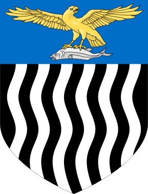 The Coat of Arms of Northern Rhodesia featured a shield split In two. The top half showed an eagle picking up a fish and the bottom half featured black and white wavy lines.