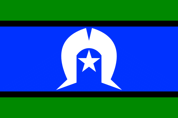 An official flag was designed in 1992 to represent the Torres Strait Islanders. The Torres Strait Islanders flag design has green-black-blue-black-green panels with a white dhari headdress in the centre with a five-pointed star in the centre.
