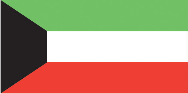 A new Pan-Arab coloured flag was adopted for Kuwait in 1961. It features a green-white-red horizontal tricolour representing the land, deeds and swords with a black trapezium representing the historical battles