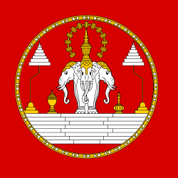The historical Royal Standard of Laos features a more stylised version of the elephant emblem on the national flag inside a red square.
