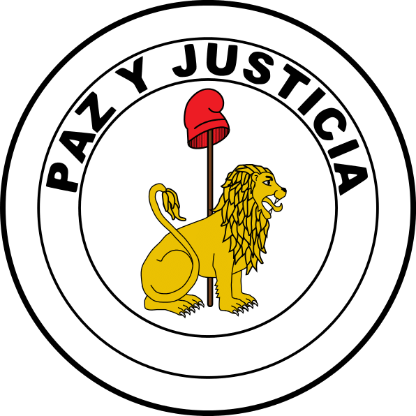 The reverse of the Coat of Arms also is the Seal of the Supreme Court. It features a right facing golden lion with staff and liberty cap. About is the motto “PEACE AND JUSTICE”.