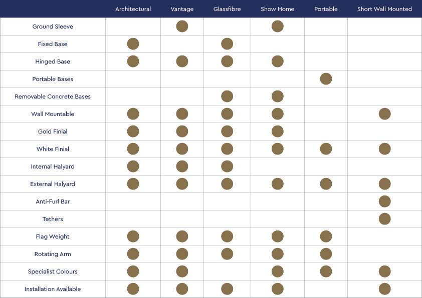 Check out our flagpole cheat sheet outlining the different options available to you.